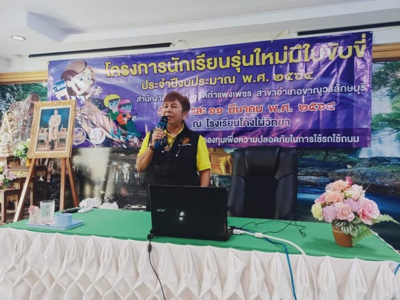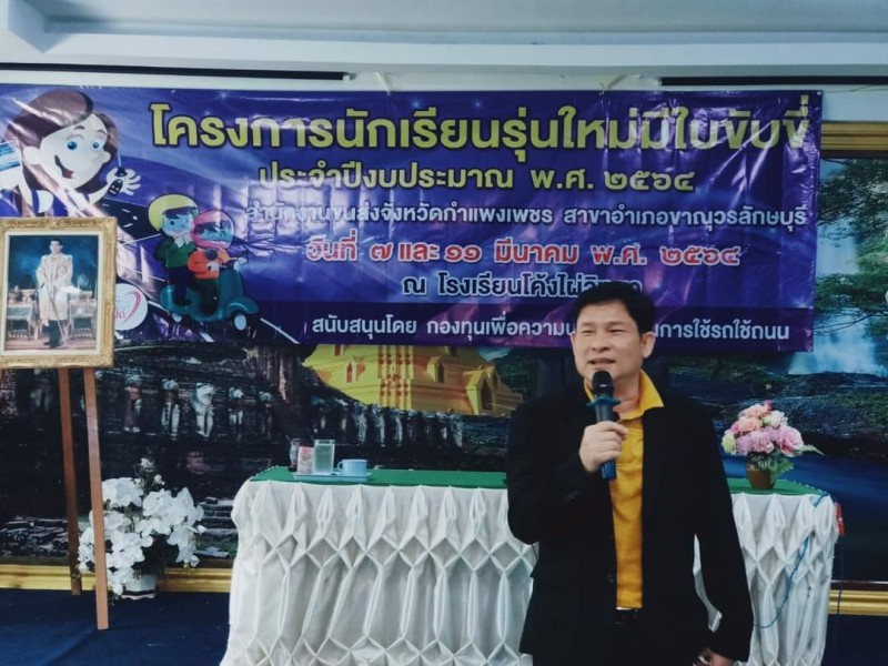 โครงการนักเรียนรุ่นใหม่มีใบขับขี่ ประจำปีงบประมาณ พ.ศ. ๒๕๖๔ สำนักงานขนส่งจังหวัดกำแพงเพชร สาขาอำเภอขาณุวรลักษบุรี วันที่ ๗ มีนาคม พ.ศ. ๒๕๖๔ ณ โรงเรียนโค้งไผ่วิทยา สนับสนุนโดย กองทุนเพื่อความปลอดภัยในการใช้รถใช้ถนน |