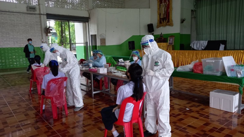การตรวจหาเชื้อ COVID-19 ให้กับผู้บริหาร คณะครูบุคลากรและนักเรียนที่มาเรียน Onsite