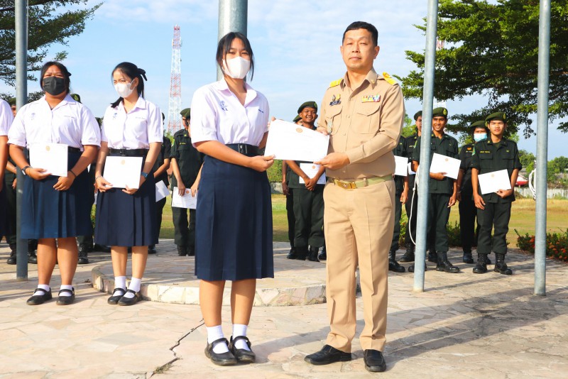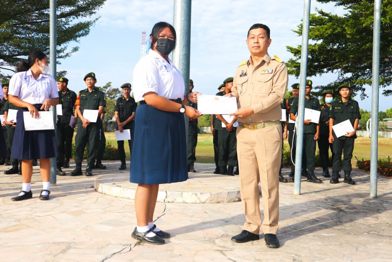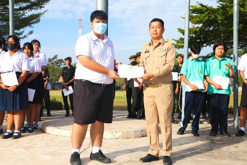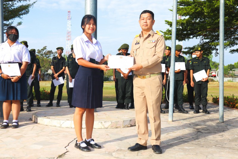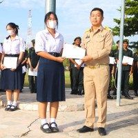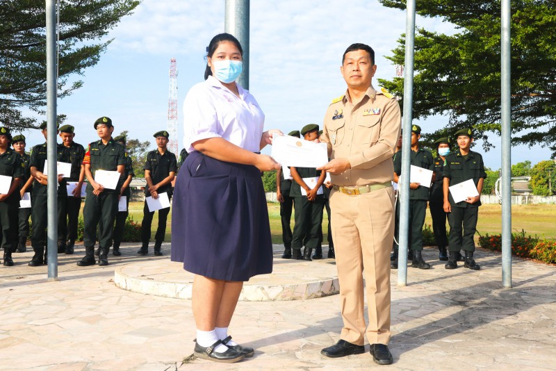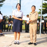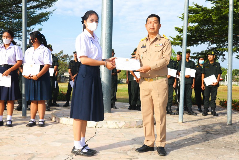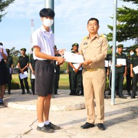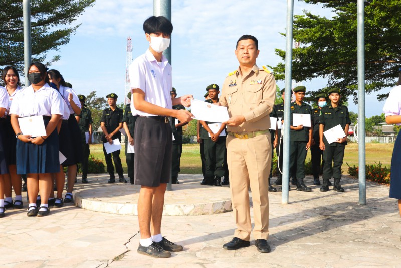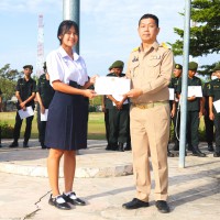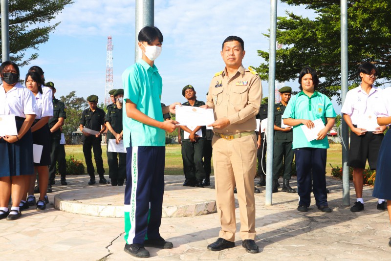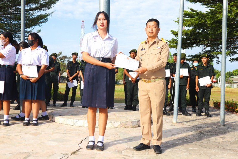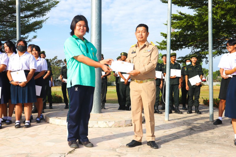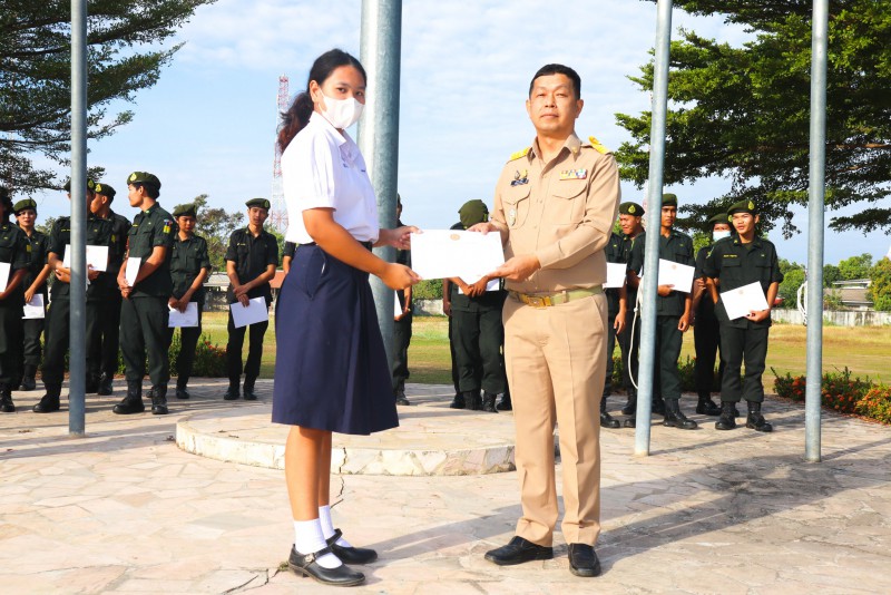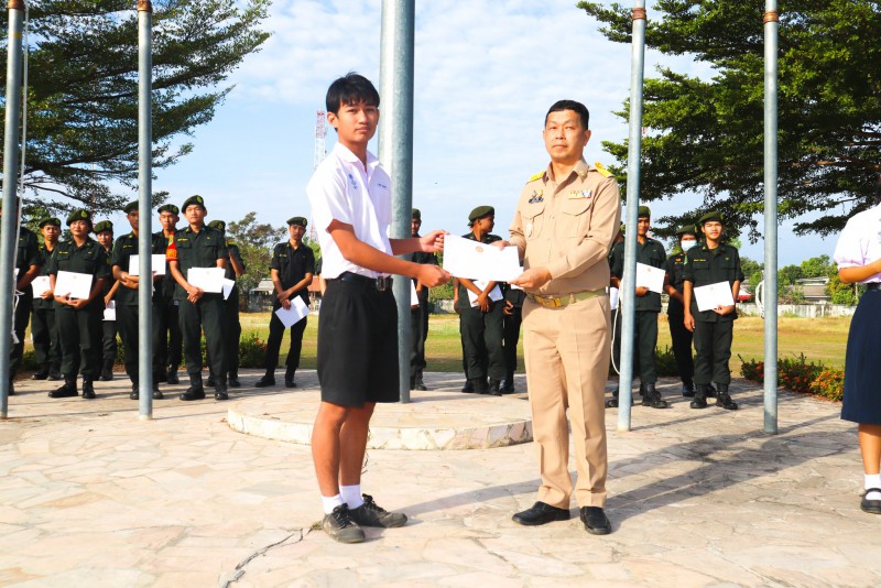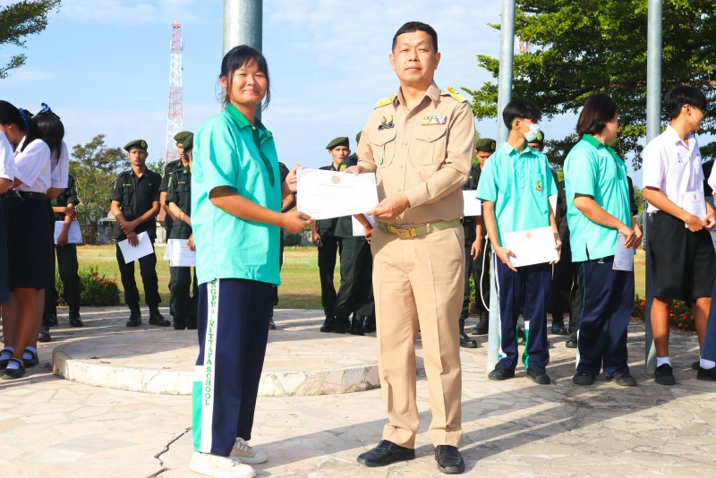 การมอบเกียรติบัตรสำหรับ นศท.จิตอาสา และ นักเรียนจิตอาสา ในช่วงกิจกรรมหน้าเสาธง สืบเนื่องจากความเสียสละและจิตอาสาช่วยเหลืองานและร่วมเป็นคณะกรรมการสนามสอบธรรมสนามหลวง |