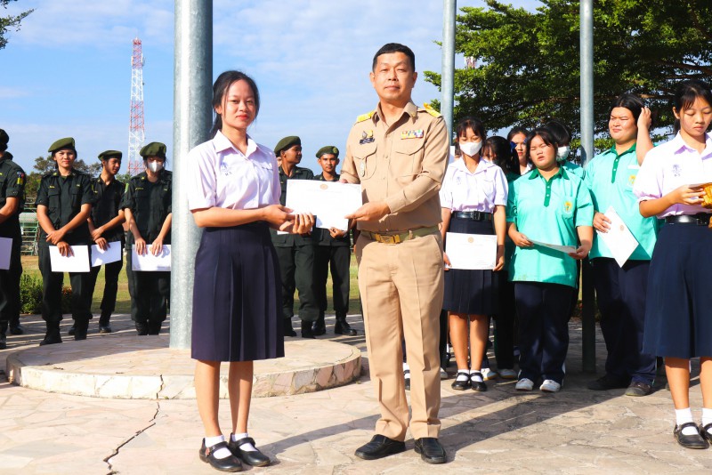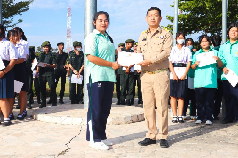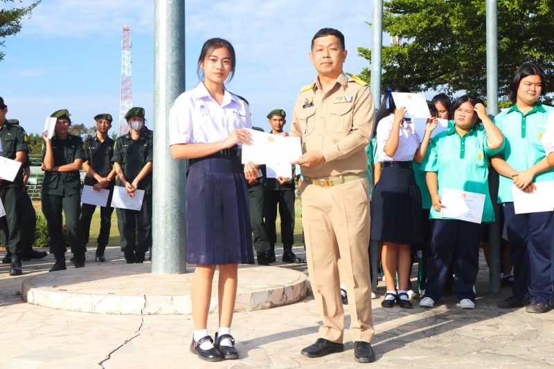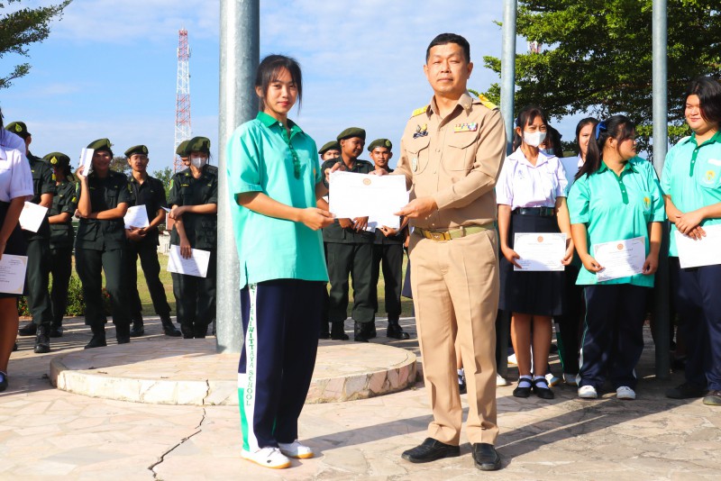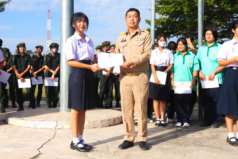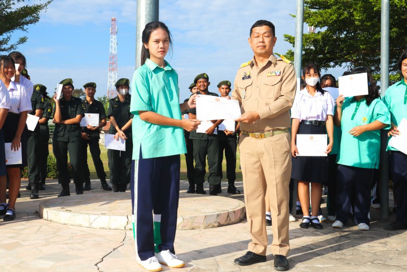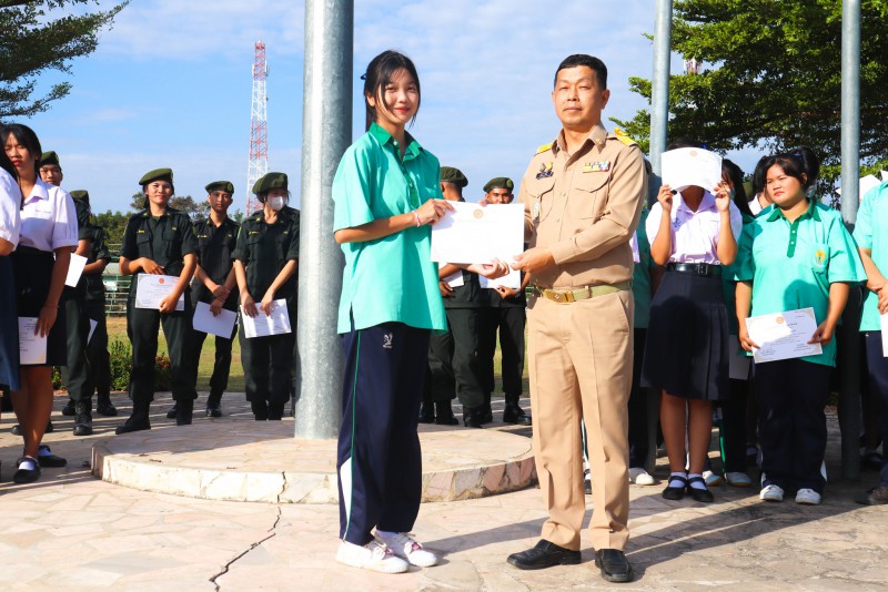 การมอบเกียรติบัตรสำหรับ นศท.จิตอาสา และ นักเรียนจิตอาสา ในช่วงกิจกรรมหน้าเสาธง สืบเนื่องจากความเสียสละและจิตอาสาช่วยเหลืองานและร่วมเป็นคณะกรรมการสนามสอบธรรมสนามหลวง |