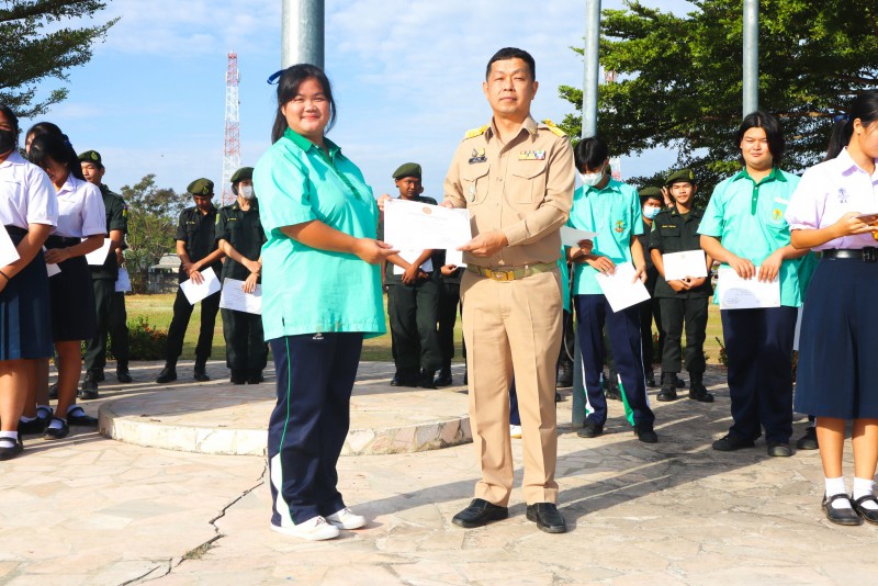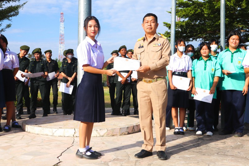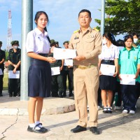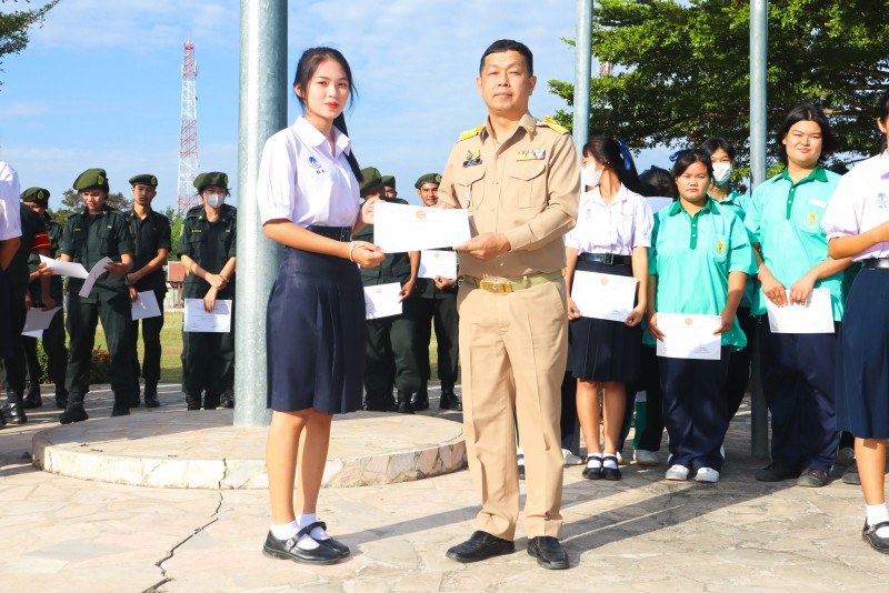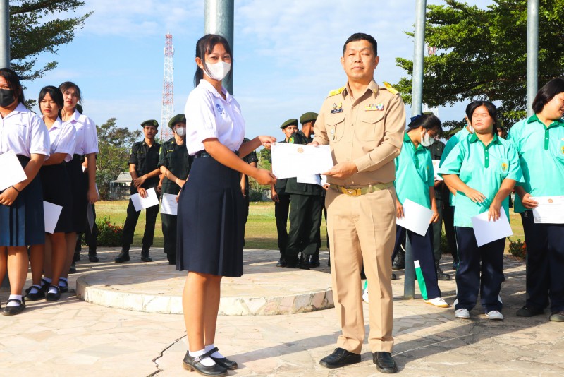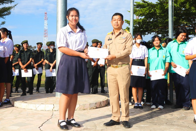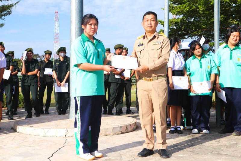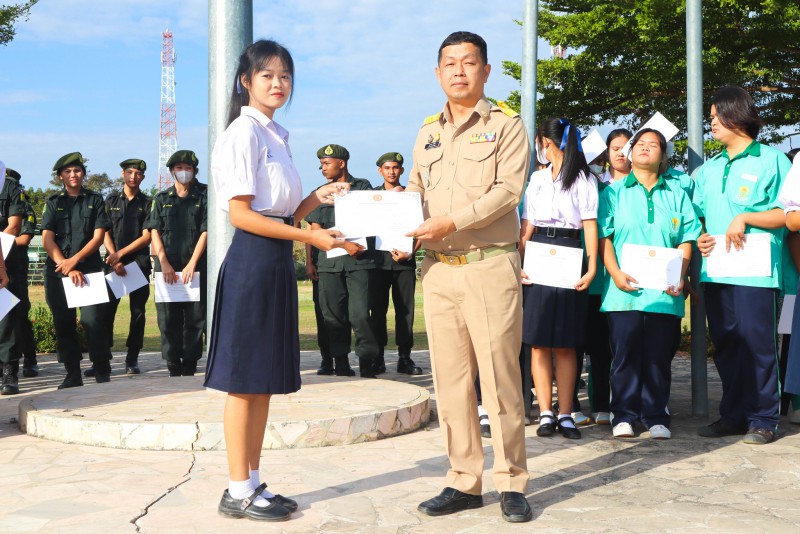 การมอบเกียรติบัตรสำหรับ นศท.จิตอาสา และ นักเรียนจิตอาสา ในช่วงกิจกรรมหน้าเสาธง สืบเนื่องจากความเสียสละและจิตอาสาช่วยเหลืองานและร่วมเป็นคณะกรรมการสนามสอบธรรมสนามหลวง |