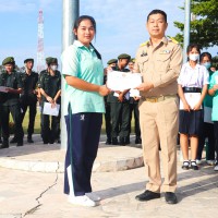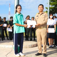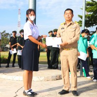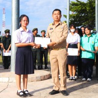 การมอบเกียรติบัตรสำหรับ นศท.จิตอาสา และ นักเรียนจิตอาสา ในช่วงกิจกรรมหน้าเสาธง สืบเนื่องจากความเสียสละและจิตอาสาช่วยเหลืองานและร่วมเป็นคณะกรรมการสนามสอบธรรมสนามหลวง