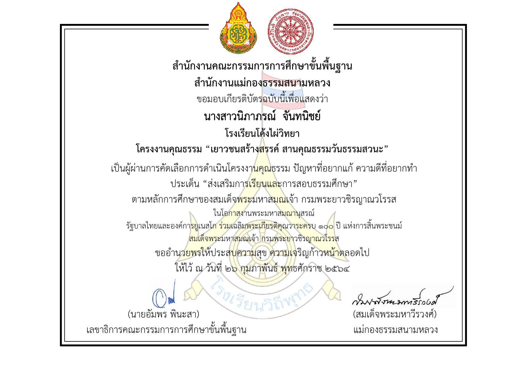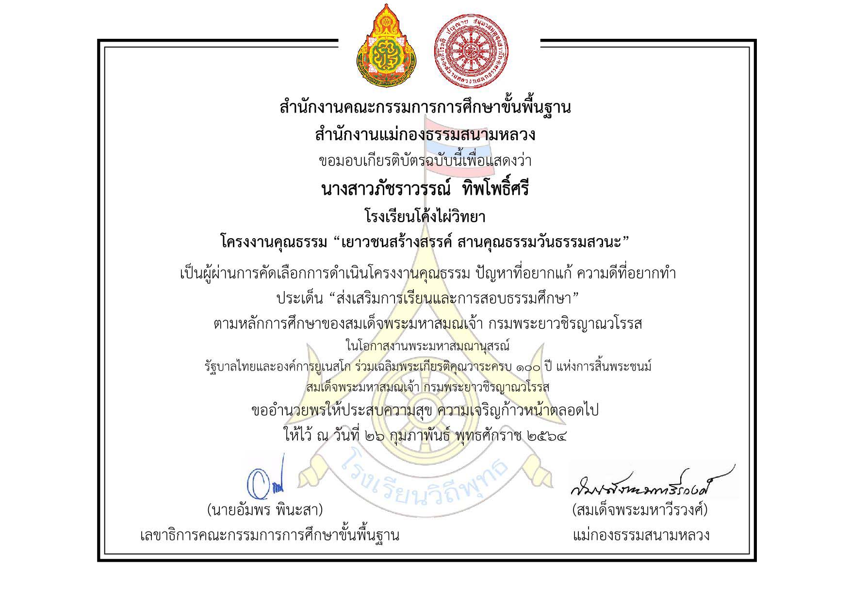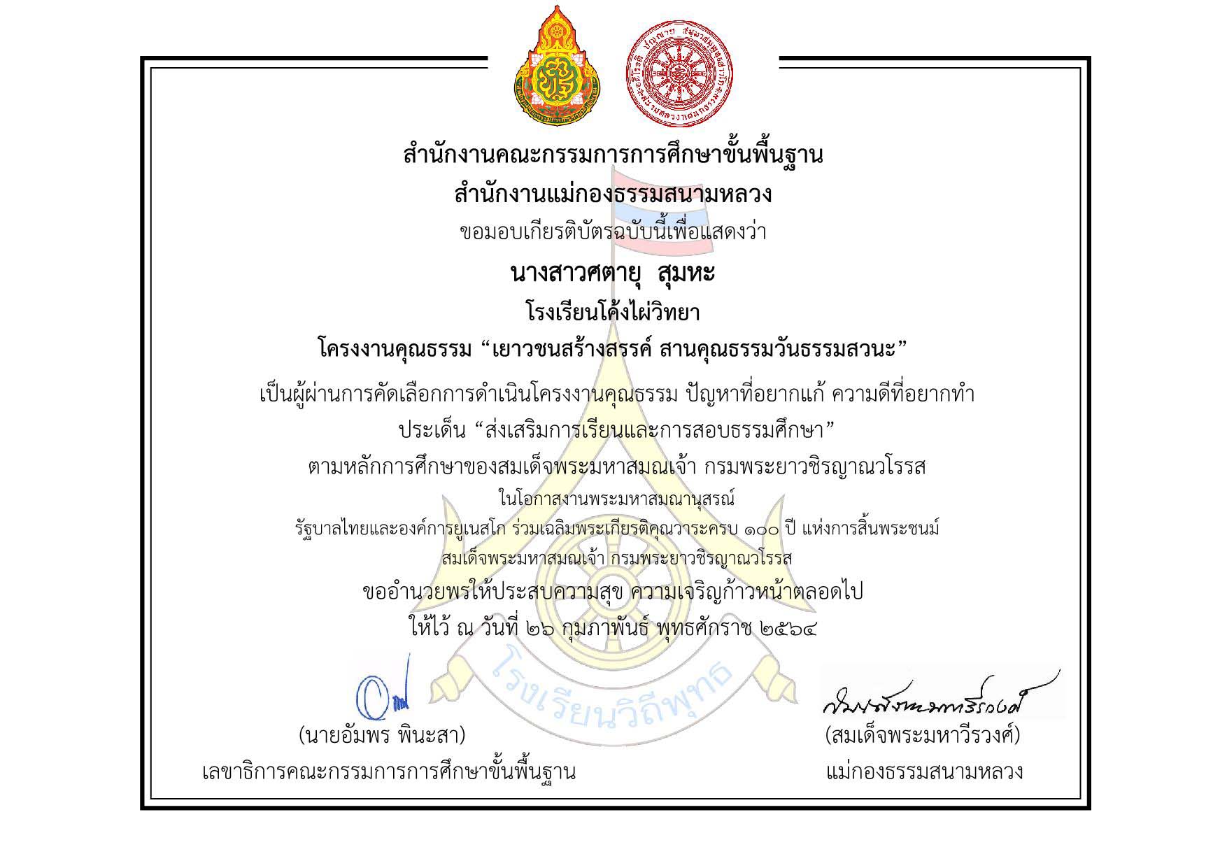 โครงงานคุณธรรม "เยาวชนสร้างสรรค์ สานคุณธรรมวันธรรมสวนะ"
